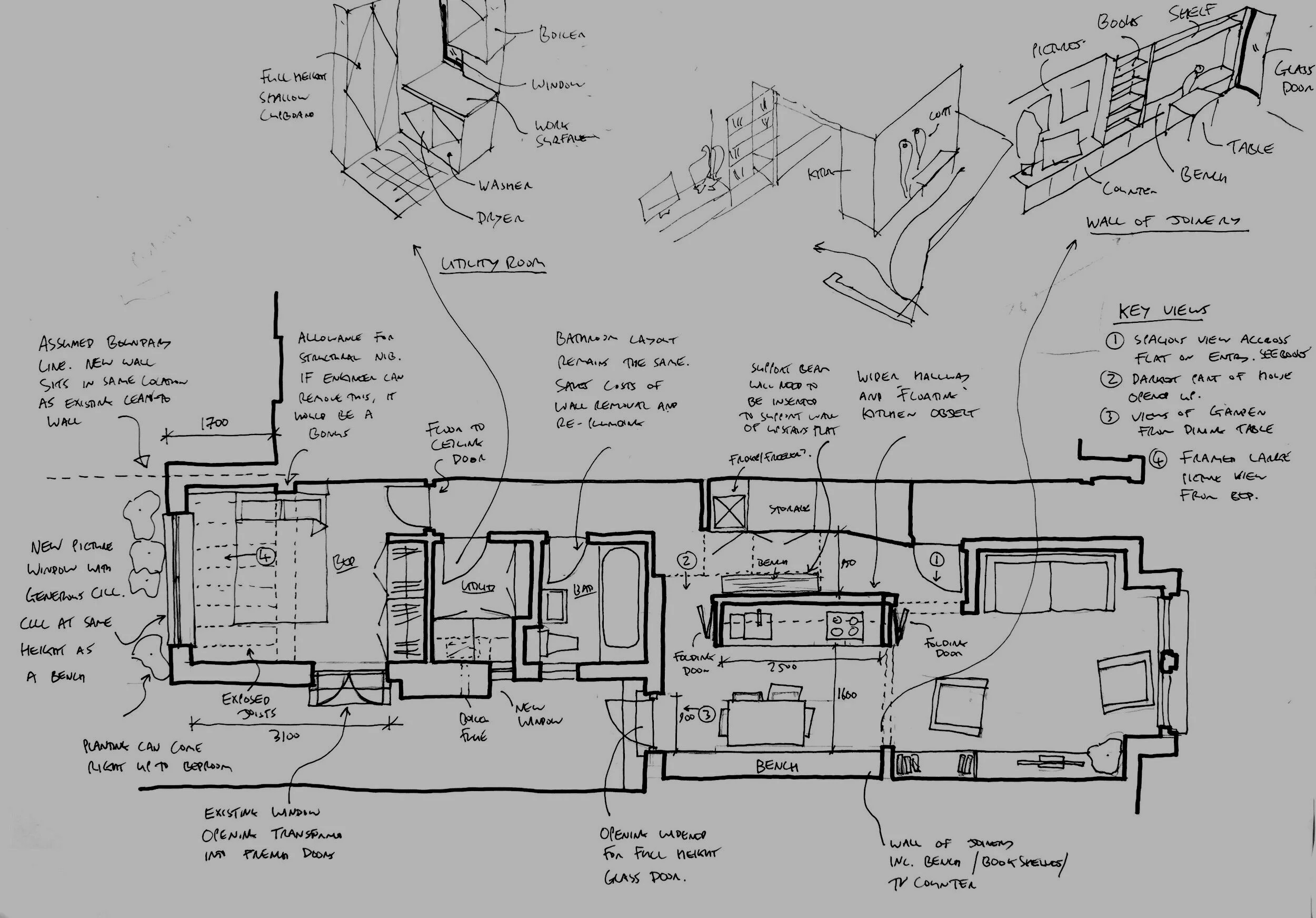 During our first meeting with you, we will have developed the bare bones of an idea for your home. The next step will be to draw these designs, using the measured survey you have commissioned, to produce a set of to-scale proposal drawings. The process of producing the drawings post-meeting enables us to develop and test the design and enables you to share them with third parties (such as builders) to start planning the next steps of your project.